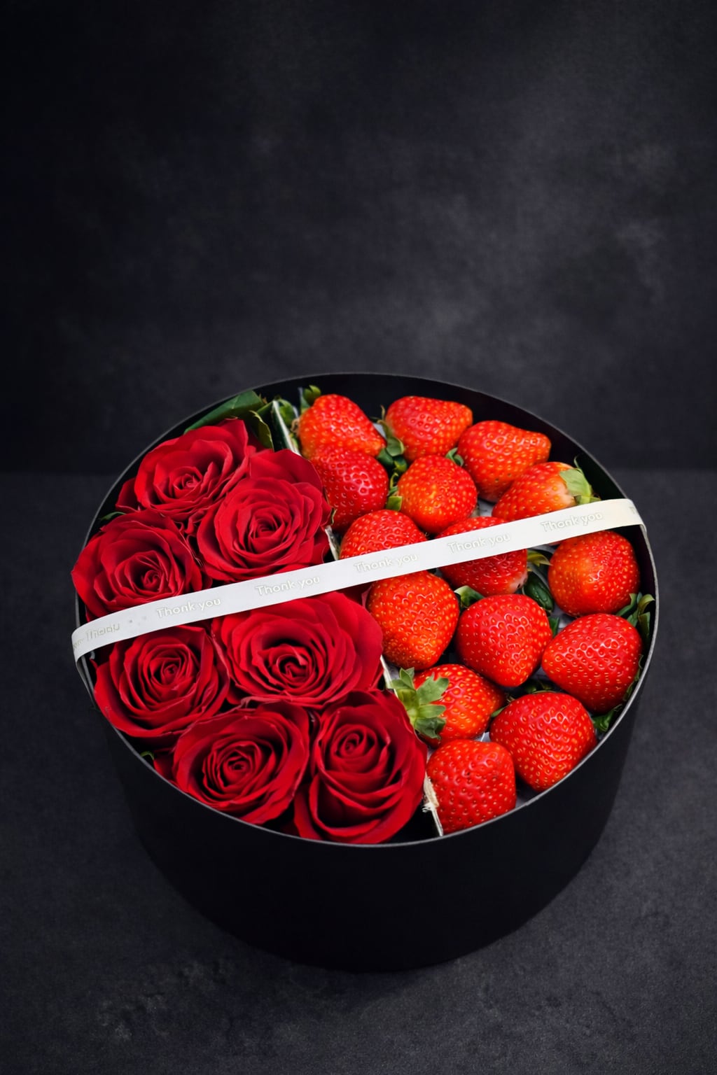 • 内容: 当日厳選の最高級いちご & 真っ赤な薔薇(季節の花材)