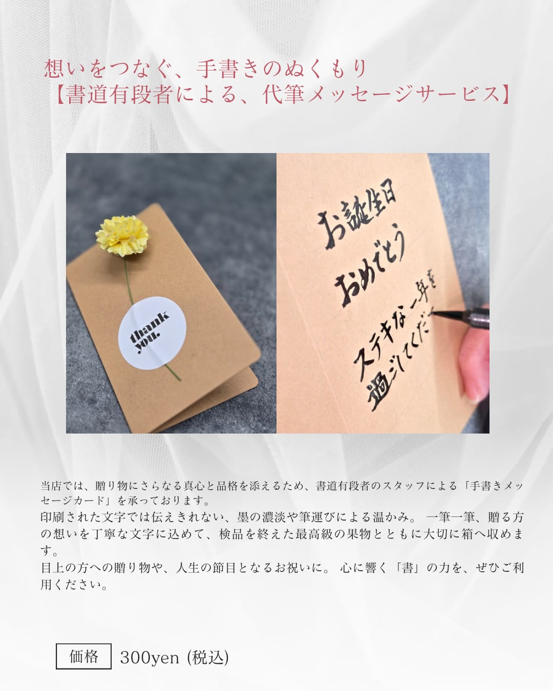 素敵な贈り物となりますように、スタッフ一同心を込めてお作りいたします。